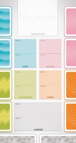 Un espace personnel, délimité et sécurisant, est proposé sous forme de plateau de jeu. Le joueur va pouvoir matérialiser son avancée, se recentrer, prendre conscience de ses ressources et les déposer dans les espaces prévus pour chaque thème. Il offre aussi la possibilité aux participants de partir avec un visuel de ressources qu'ils ont eux mêmes fait évoluer à l'occasion de leur cheminement dans le jeu.